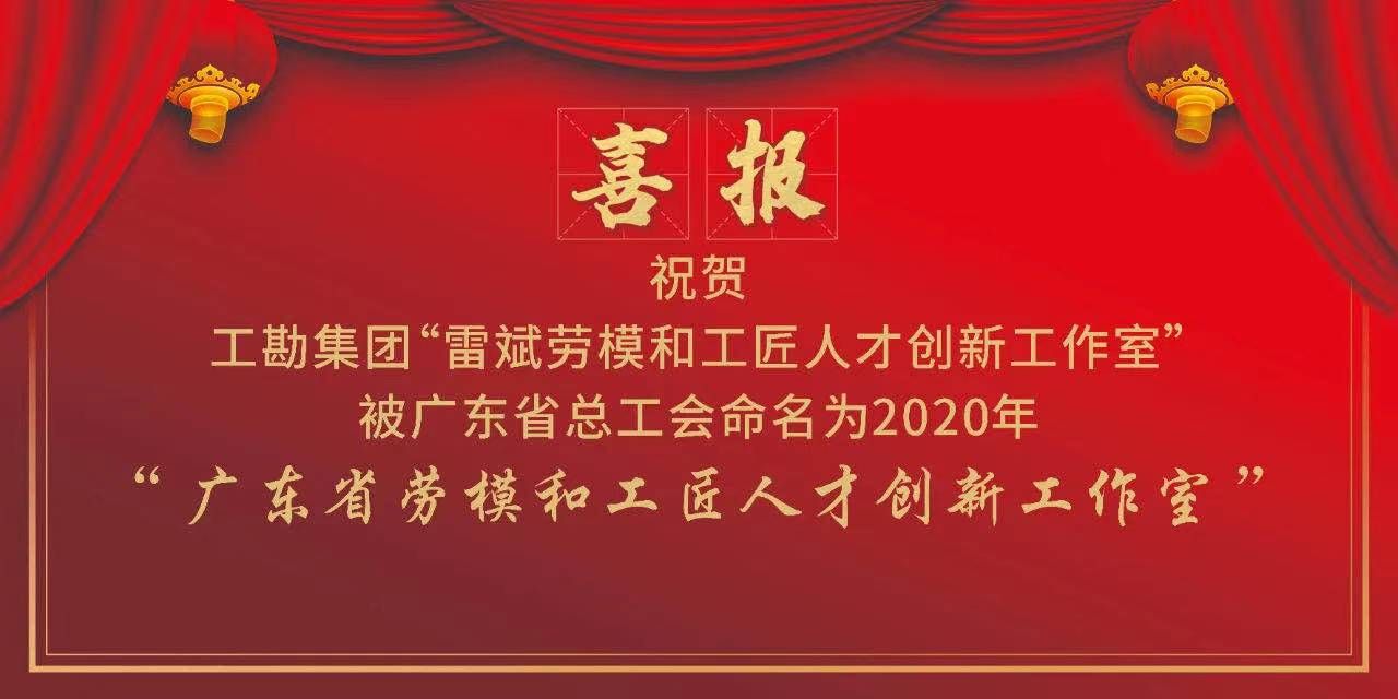 祝賀工勘巖土集團“雷斌勞模和工匠人才創(chuàng)新工作室”被廣東省總工會命名為2020年“廣東省勞模和工匠人才創(chuàng)新工作室”