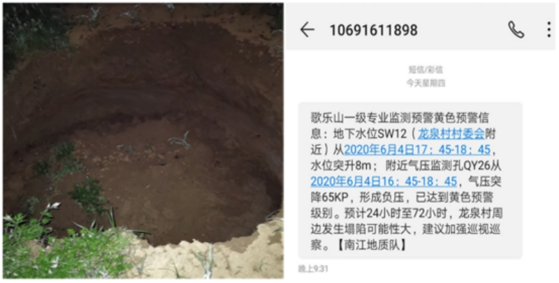 2020年6月4日21時30分,重慶市大型地質災害一級專業(yè)監(jiān)測項目——歌樂山巖溶地面塌陷智能化預警平臺成功預警了兩處巖溶地面塌陷。本次及時預警,未造成人員傷亡,這在重慶尚屬首例。