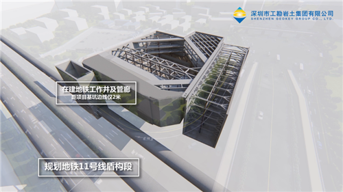 通過三維可視化BIM模型分析周邊地理環(huán)境對基坑帶來的影響,采取針對性的基坑支護方案。白鵝潭國際金融中心項目位于兩條交通主干道交界處,臨近地鐵線路,周邊環(huán)境復雜。利用BIM技術(shù)可以直觀地展示項目周邊地鐵線路、管廊以及在建工作井與項目支護構(gòu)建的關(guān)系,分析項目施工難點以及應(yīng)對措施的可行性,從而為項目匹配最優(yōu)的基坑支護方案,即地下連續(xù)墻加內(nèi)支撐支護方案。